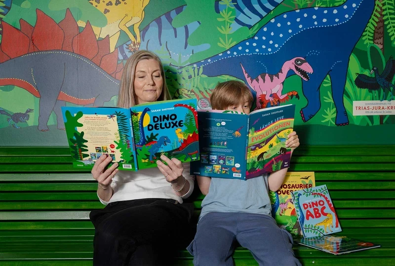 Välkommen till museets nya lilla lek och läshörna. Kliv in i Sarah Sheppards värld full av dinosaurier och andra förhistoriska djur. Här kan du lägga de förhistoriska djuren på rätt plats i historien eller sitta ner och läsa en stund.