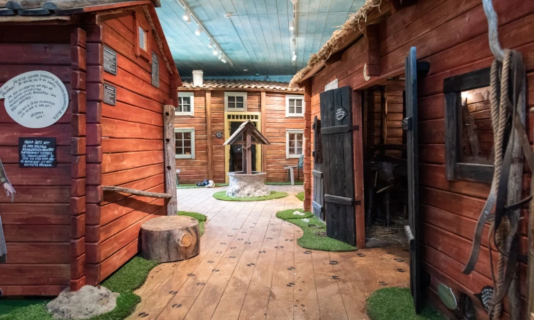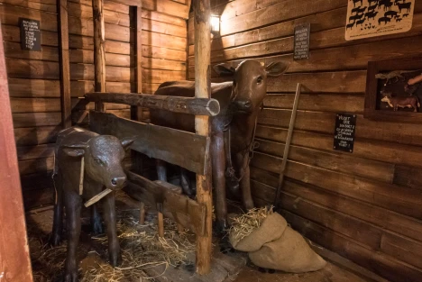 Nära stallet på Torekällberget vaktar bergets snällaste vakthund. Klappa henne gärna på vägen in i utställningen. Möt gårdens folk och fä år 1864 i ett rum roligt både för barn och vuxna. Pigan Oscara berättar hur det var att leva i en annan tid, på en bondgård i en by som heter Råby. Hjälp henne att svara på frågor och att utföra olika sysslor. Leta råttor i matboden och ägg i ladugården. Hämta vatten från brunnen. Följ djurspåren och gissa vilket djur som har bajsat. Kan du hitta gårdstomten?