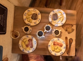 När du kliver ut igen, missa då inte att kika in i den riktiga bondgården från Råby. Bostadshuset flyttades till Torekällberget år 1929 och står bara några meter bort från utställningen.