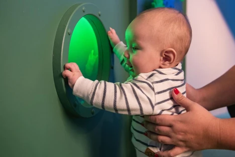 Blubb är anpassat för barn 0-6 år tillsammans med sitt vuxna sällskap. Även för de allra yngsta bjuder rummet på fina upplevelser med ljud och ljus, klämma och känna, krypa, stå och gå. I en avskärmad del finns mjukdjur, böcker och möjlighet att lyssna på sagor.