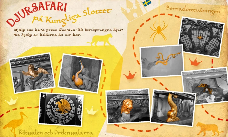 Med bildkartan, som hämtas i biljettkassorna, blir slottsvandringen en upptäcktsfärd. Djuren på kartan återfinns i paradrummens inredningar och det kluriga uppdraget är att hitta dem.