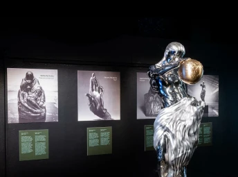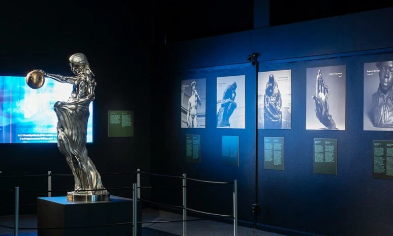 Det mest spektakulära föremålet i Galleri AI är en skulptur i glänsande stål – en sammansmältning av mänsklig kreativitet som spänner över tre kontinenter och 500 år tillbaka i tiden. Statyn skapades genom att träna flera AI-modeller på arbetet från några av världens största och mest kända skulptörer – ikoniska konstverk av Michelangelo, Rodin, Kollwitz, Kotaro och Savage