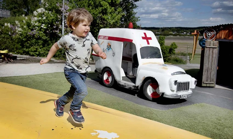 Banankontakt utanför Åbergs museum är en unik park präglad av kreativitet och lekfullhet.