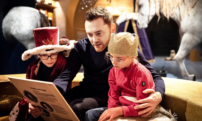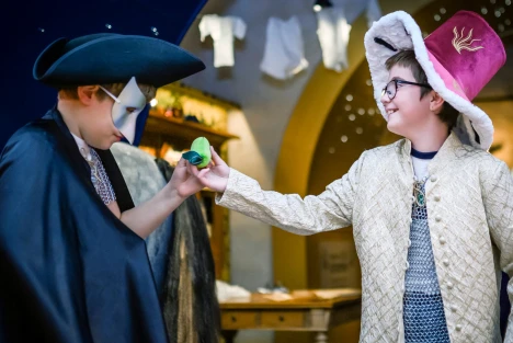 I Lilla rustkammaren har vi tagit ett kliv ut ur montrarna och rakt in i den kungliga, förunderliga historien. Under den glimrande stjärnhimlen händer magiska saker! Balansera en krona på ditt huvud, kryp in under drottning Kristinas mantel, utforska kuriosakabinettet och upptäcka konservatorns ateljé. Men vad gör hundporträtten på väggen här? Och vad är det som luktar på slottet?