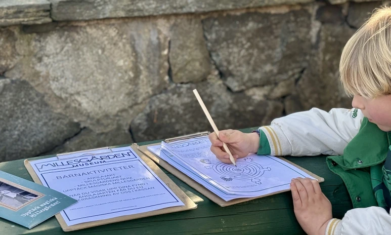 Barnspåret är en mapp som är fylld av knep och knåp och får dig att rita, skriva och också berätta om dina tankar kring det du ser. Så det blir också roligt för de som går med dig på turen. Om du inte hinner rita färdigt kan du så klart ta med dig häftet och fortsätta hemma. I häftet finns även små korta LÄR DIG MER-texter, du kan bli en riktig Milles-expert!