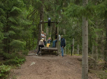 En hinderbana i skogen som består av ett antal aktiviteter i olika svårihetsgrad. Banan är byggd i en fantastisk skogsdunge där du och din familj inte bara får spänning och aktivitet utan också en naturupplevelse. Läs mer om skogshinderbanan.