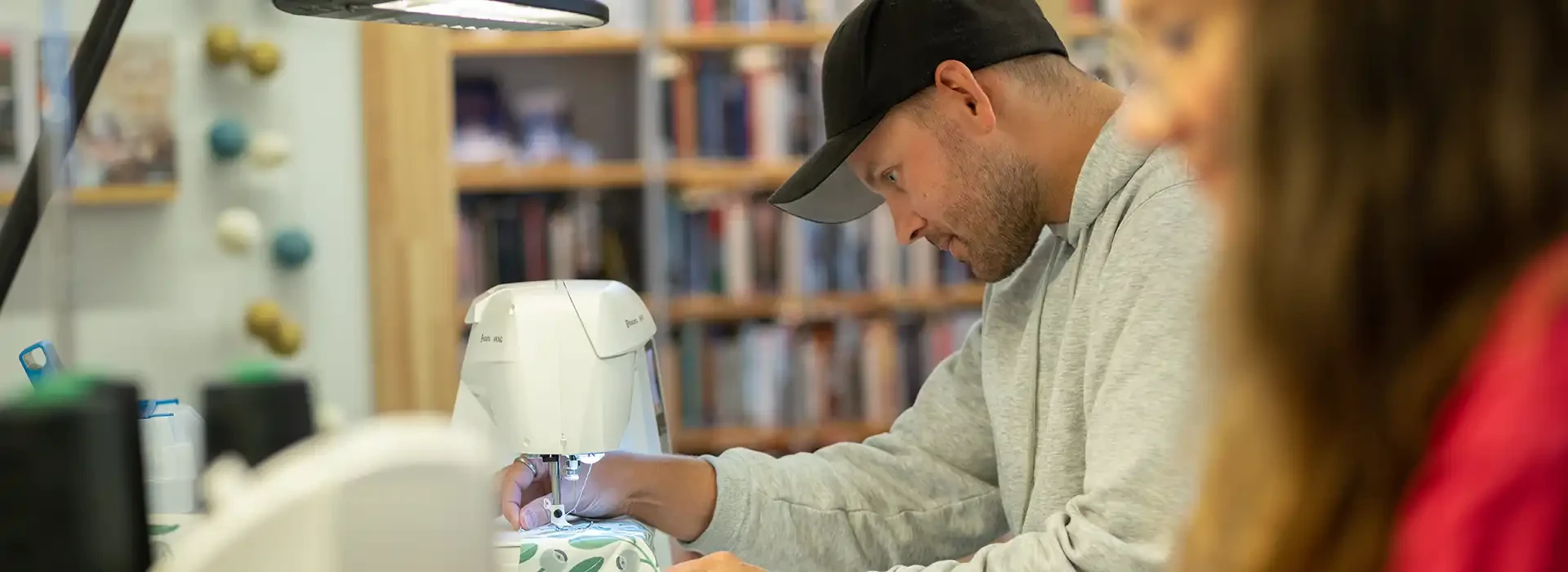 Låna en symaskin eller overlockmaskin på Stadsbiblioteket. Perfekt för dig som behöver laga ett plagg ett jobba på ett syprojekt.