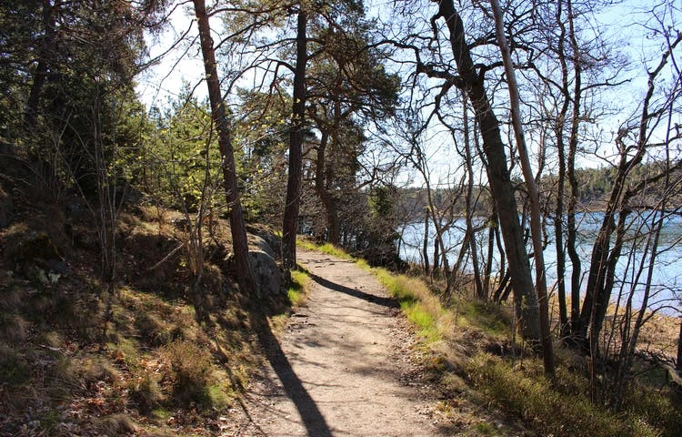 Tips! När du kommer ut på Hålluddsvägen kan du ta till höger och följa gångvägen 1 km till konstmuseet Artipelag. Här kan du njuta av konst, god mat och vacker natur med fantastisk utsikt över Baggensfjärden.