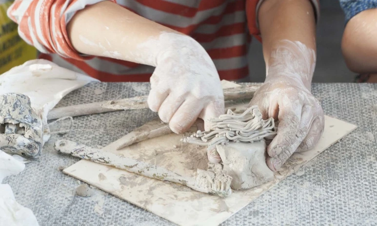 I verkstan på Gustavsbergs porslinsmuseum kan du prova på världens äldsta konstnärsmaterial. Prova att ringla, skulptera, tumma, tänja och dreja.