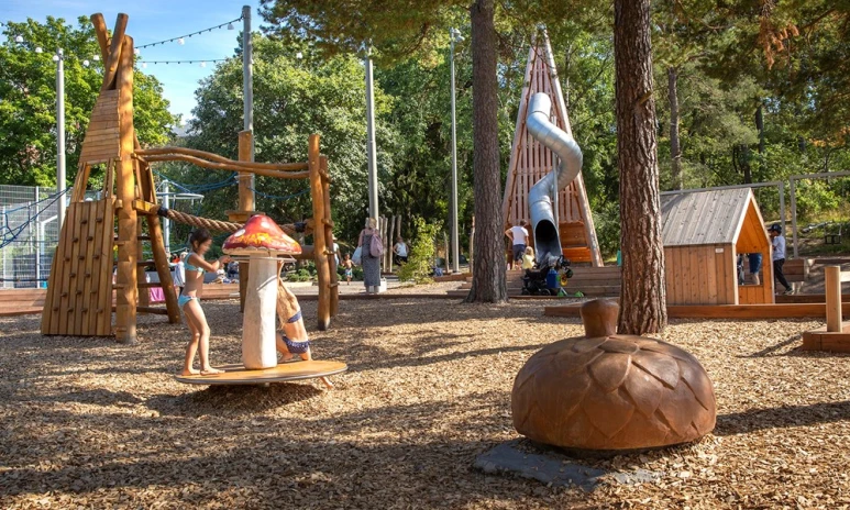 Inne i parkhuset kan du spela pingis, biljard, läsa, fika samt en massa annat. På sommaren kan du bada i vår fina plaskdamm med renat och klorerat vatten och vintertid kan du roa dig med skridsko- och pulkaåkning.