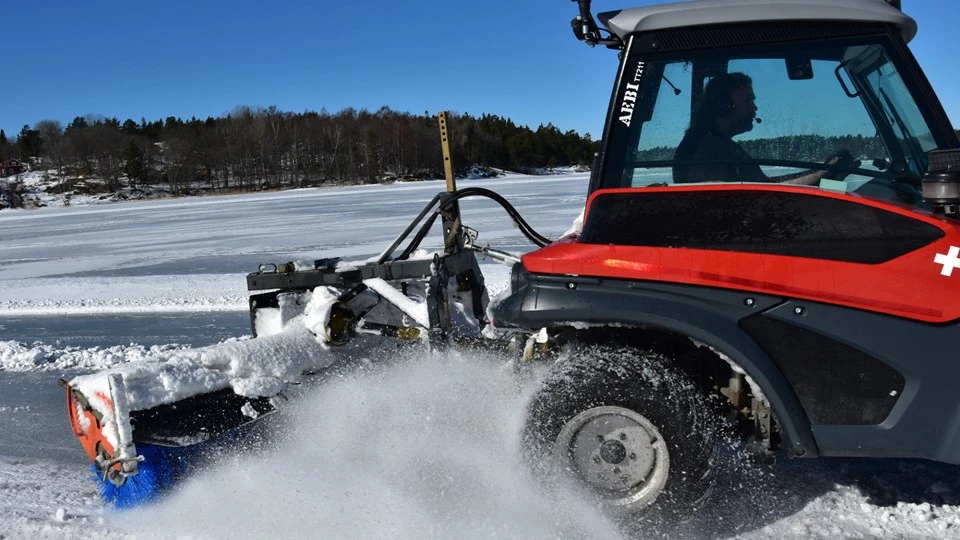 När isen har växt till 20 cm kärnis plogar vi den med tyngre fordon. Då klarar isen normalt sett stora vikter.