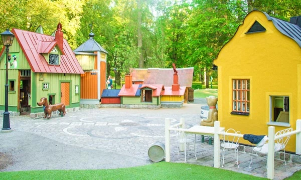 Lekplatsen är utformad efter miljöer i böckerna om Pelle Svanslös som utspelar sig i och omkring Uppsala. Här kan barnen leka i Pelles hus, besöka Råttströms konditori eller ta bussen till Skogstibble.