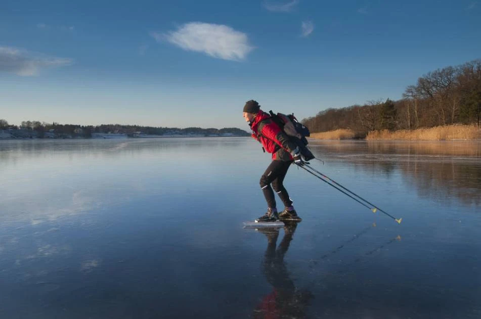 Se till att alltid vara utrustad med isdubbar, flythjälp, mobiltelefon i vattentätt fodral och räddningslina. Sällskap, kunskap och redskap är viktigt att tänka på vid vistelse på sjöisar.