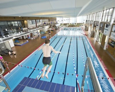 En av Stockholms största simhallar med en badanläggning som erbjuder en mängd olika aktiviteter. Här finns hopptorn och svikt och en plaskbassäng för de minsta barnen (djup ca 20 cm). Avsluta dagen eller ditt pass med att svettas i bastun och kanske unna dig något i vår kiosk och kafé.