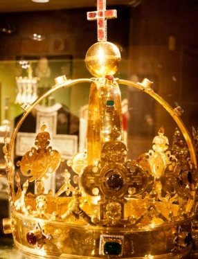 I Skattkammaren finns kläder från riktiga kungligheter, glänsande föremål i guld och silver och världens enda bevarade festklänning från medeltiden.