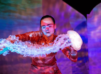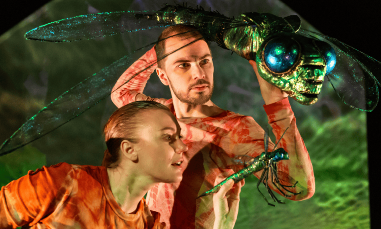 Några av Sveriges skickligaste mimare gestaltar allt från amöbor, kräldjur, fiskar, fåglar och apor. Hela vägen fram till den moderna människan och in i framtiden. Ett färgsprakande, medryckande, fysiskt äventyr genom tid och rum, liv och död.