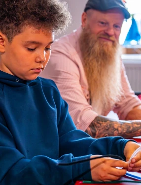 I museets ateljé kan du skapa fritt i en lugn och inspirerande miljö, fylld med material, färg och enkla instruktioner som passar både barn och vuxna.