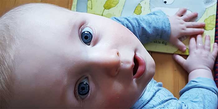 Vi sjunger, läser, rimmar och ramsar med de allra minsta cirka 6–12 månader.