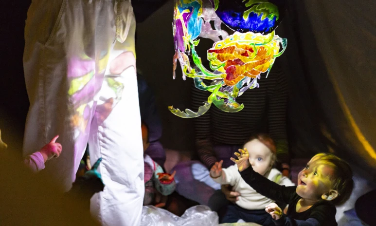 Babysalong är för de yngsta (3-18 månader). Möt våra dockor i ett upplevelsekafé för alla sinnen, i väntan på teaterdebuten.