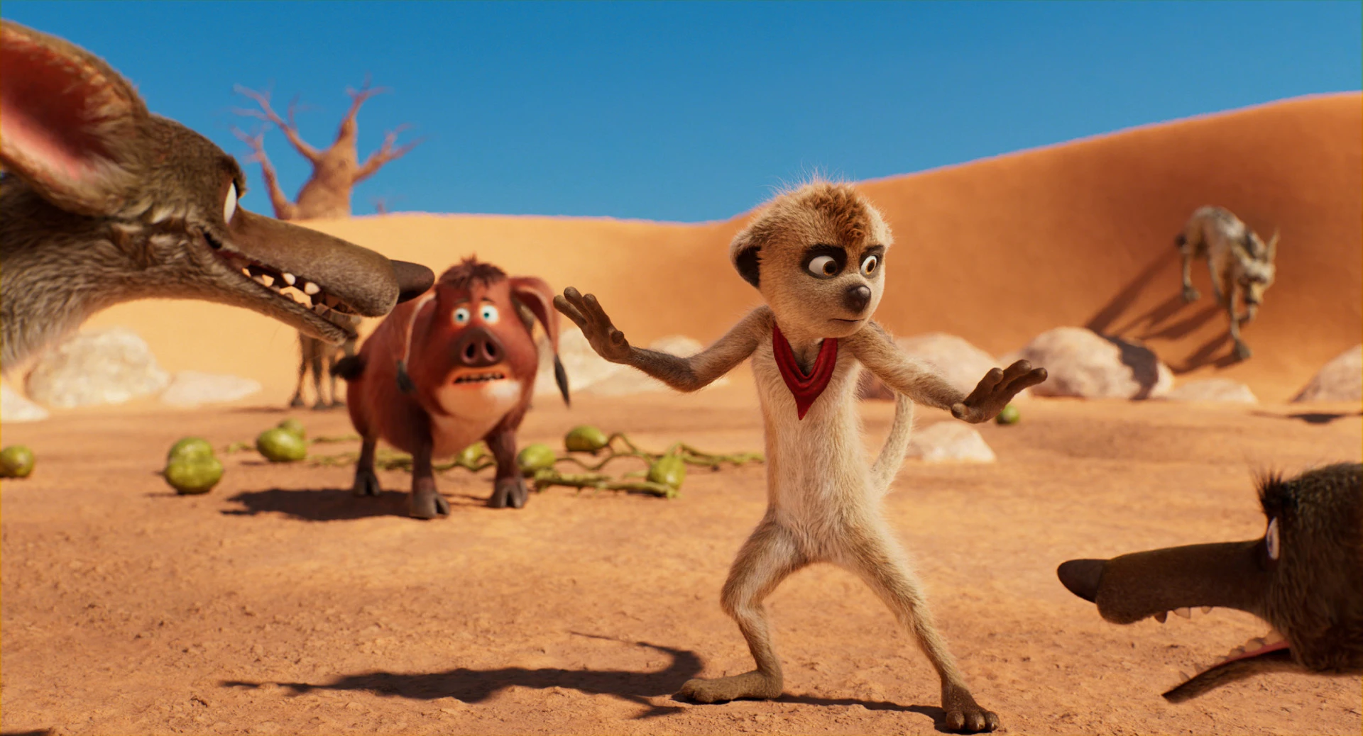 Den lilla surikaten Tafiti ger sig ut på en farofylld resa när hans morfar blivit biten av en giftorm. Målet är att i kullarna bortom öknen hitta ett motgift. Hack i häl följer penselsvinet Borst som inget hellre vill än att bli Tafitis bästa vän.