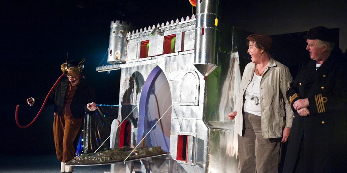 Föreställningen spelas i och runt det mobila Konst-SLOTTET.