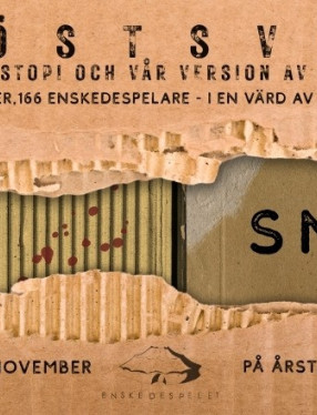 Enskedespelet presenterar “Höstsvit”! Två föreställningar: ”Snövit” och ”I have a dream”, med 166 Enskedespelare, i en värld av kartong – på Årsta teater.
