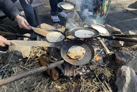 Mellan kl. 11.00 – 15.00 är elden igång för den som vill baka ett vikingatida bröd (Kostnad 30 kr). Denna tid finns också aktiviteter ute på gården, som spel och lekar, tipspromenad, och andra.