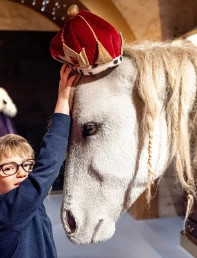 Du kan även följa med på en spännande familjevisning för stora och små i Utställningen om Sveriges kungliga historia. Lär dig om kungar, drottningar, prinsar och prinsessor. Vi tittar på glänsande rustningar, uppstoppade hästen Streiff, kungliga dräkter gjorda av guld, glittrande vagnar och mycket annat.