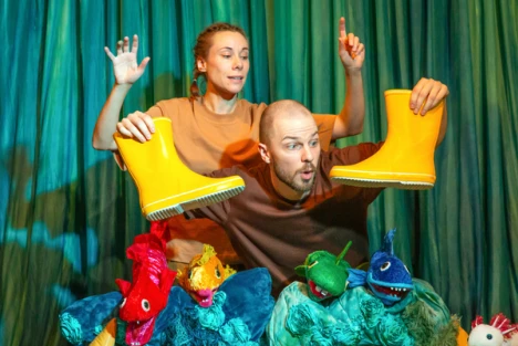 Två mimare och dockor bjuder in till ett hjärtevärmande och visuellt peksboksdrama för de allra minsta.