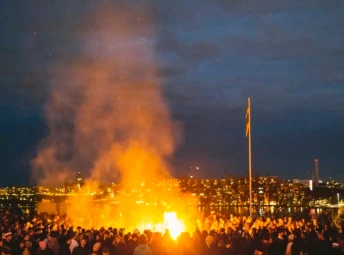På kvällen fortsätter det traditionella Valborgsfirandet på Sollidenscenen. Programmet bjuder på vårtal, körsång och musikunderhållning innan den stora valborgsbrasan tänds kl. 21.00. När elden flammar upp och vårsångerna stiger över Djurgården skapas den särskilda Valborgsstämning som gjort firandet på Skansen till en återkommande tradition för generationer.