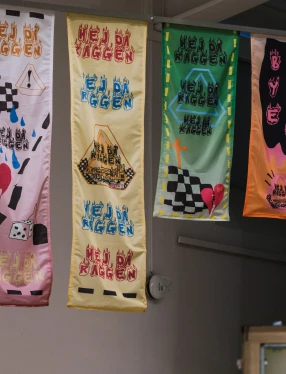 I workshopen inspireras vi av ArkDes samling som är full av flaggor och vimplar. De hör ihop med raggarbilar, hejaklackar, protest och loggor. I ArkDes Studio får barn och deras vuxna klippa, pynta och sätta ihop egna flaggor och vimplar. De kanske passar din cykel, din väska, din balkong eller din hemmahörna?